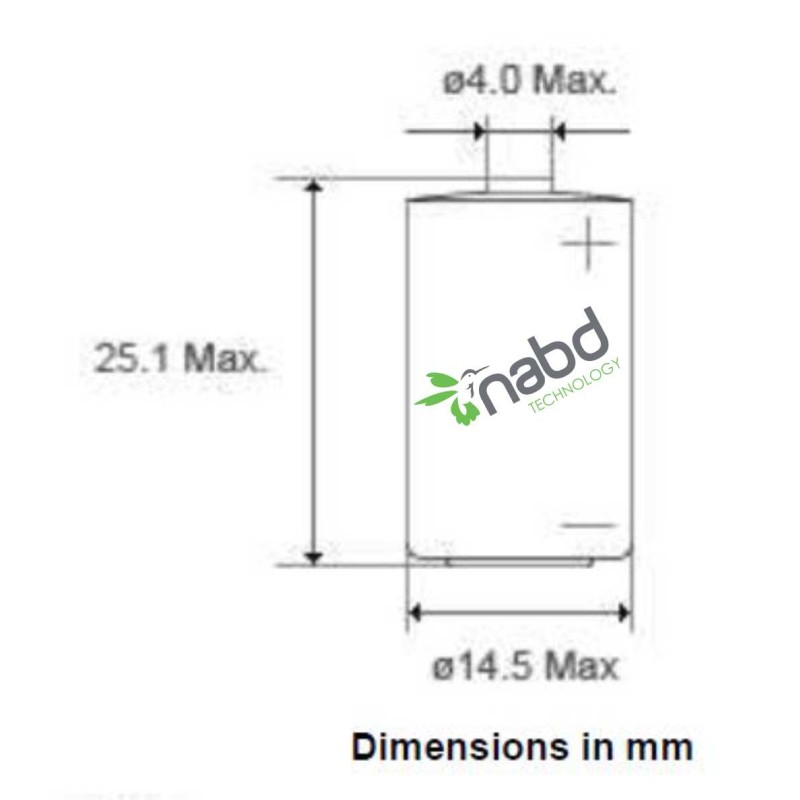 con parte superior tipo botón de 1.2 Ah a 3.6 Voltios