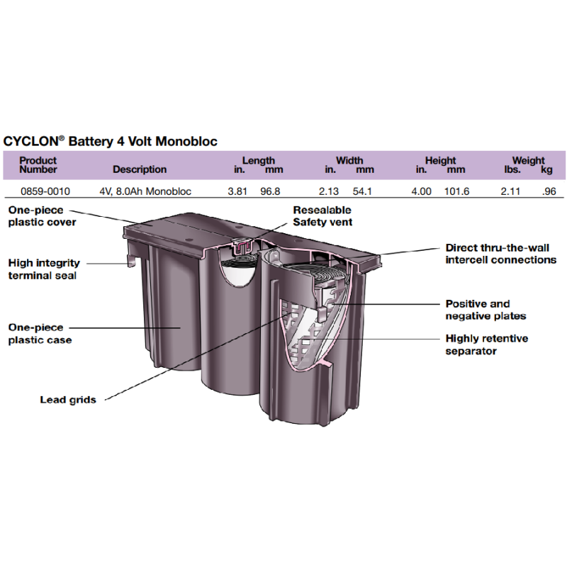 0859-0010 Cyclon 4.0V / 8.0Ah, 0859-0010 Enersys Hawker