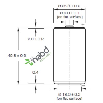 con parte superior tipo botón de 7.7 Ah a 3.6 Voltios