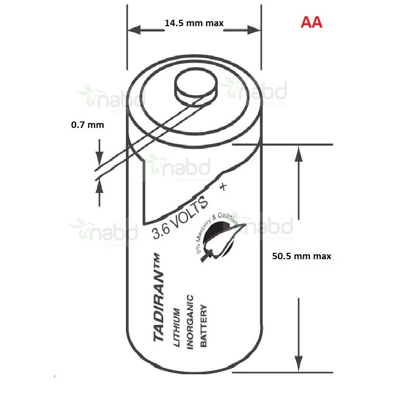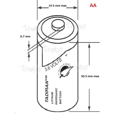 Celda NO recargable marca Tadiran tipo AA (ER14505) con parte superior de botón de 2.1 Ah a 3.6 Voltios